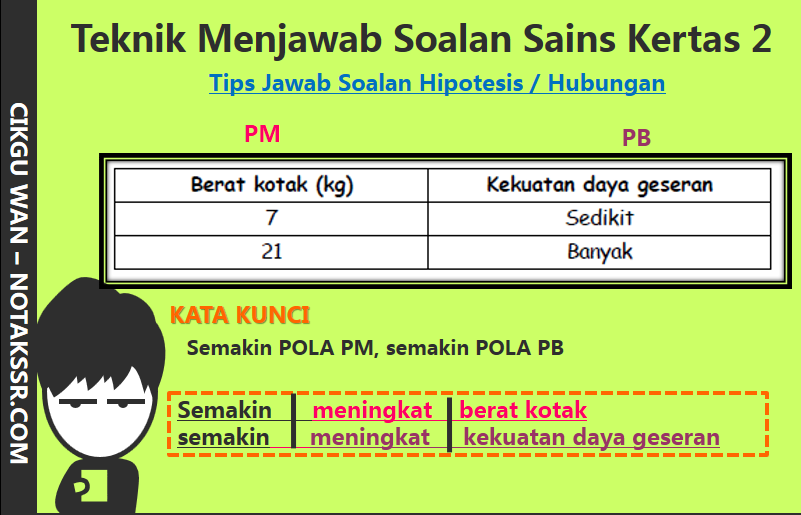 Teknik Menjawab Soalan Sains UPSR Kertas 2. Bagi mendapat markah yang baik dalam subjek sains bagi Ujian Penilaian Sekolah Rendah (UPSR), murid-murid mesti menguasai pengetahuan sains, prinsip sains, aplikasi sains dan sebagainya.